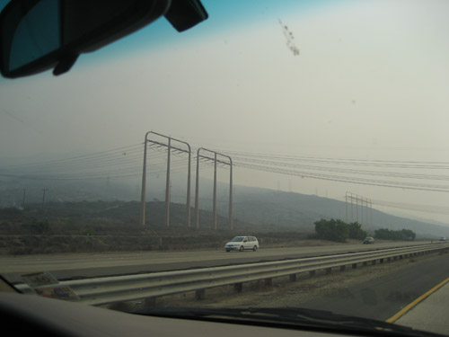 もっとひどくなっています。San Clemente を離れ San Onofre に向かう途中 Camp Pendleton からこのように煙っていました。